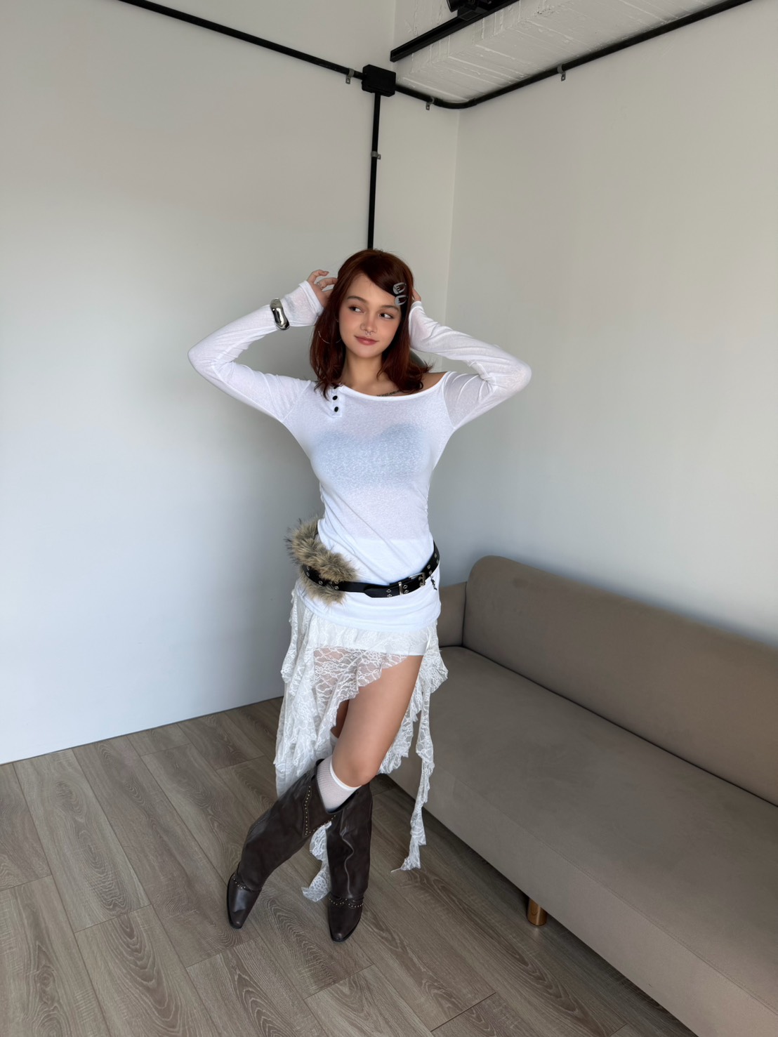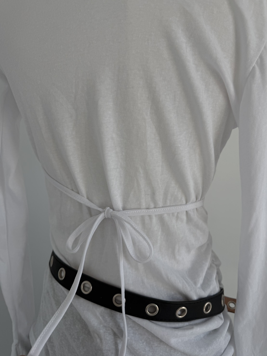忍者袖造型,單穿或疊搭皆適合,白色卻不單調! 胸下有附上腰帶可以綁前綁後都可以~
