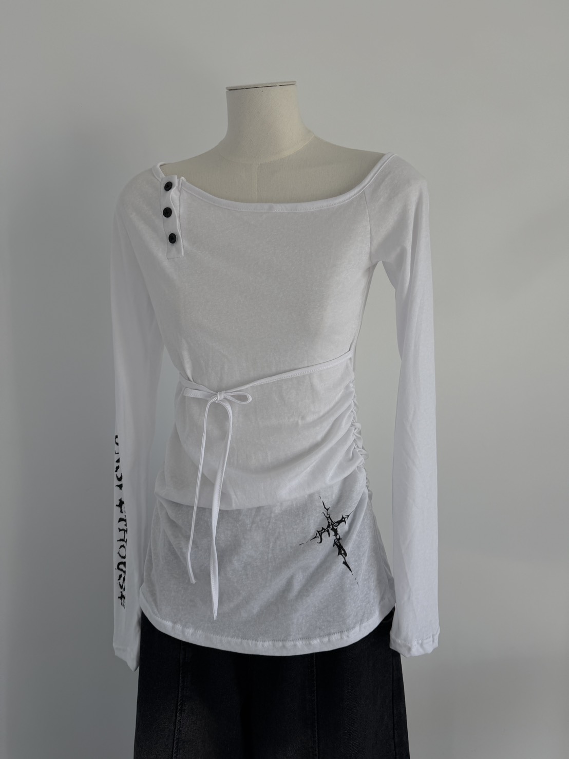 不對稱斜肩剪裁,修飾肩線比例。輕薄貼身布料,穿著舒適、層次自然!