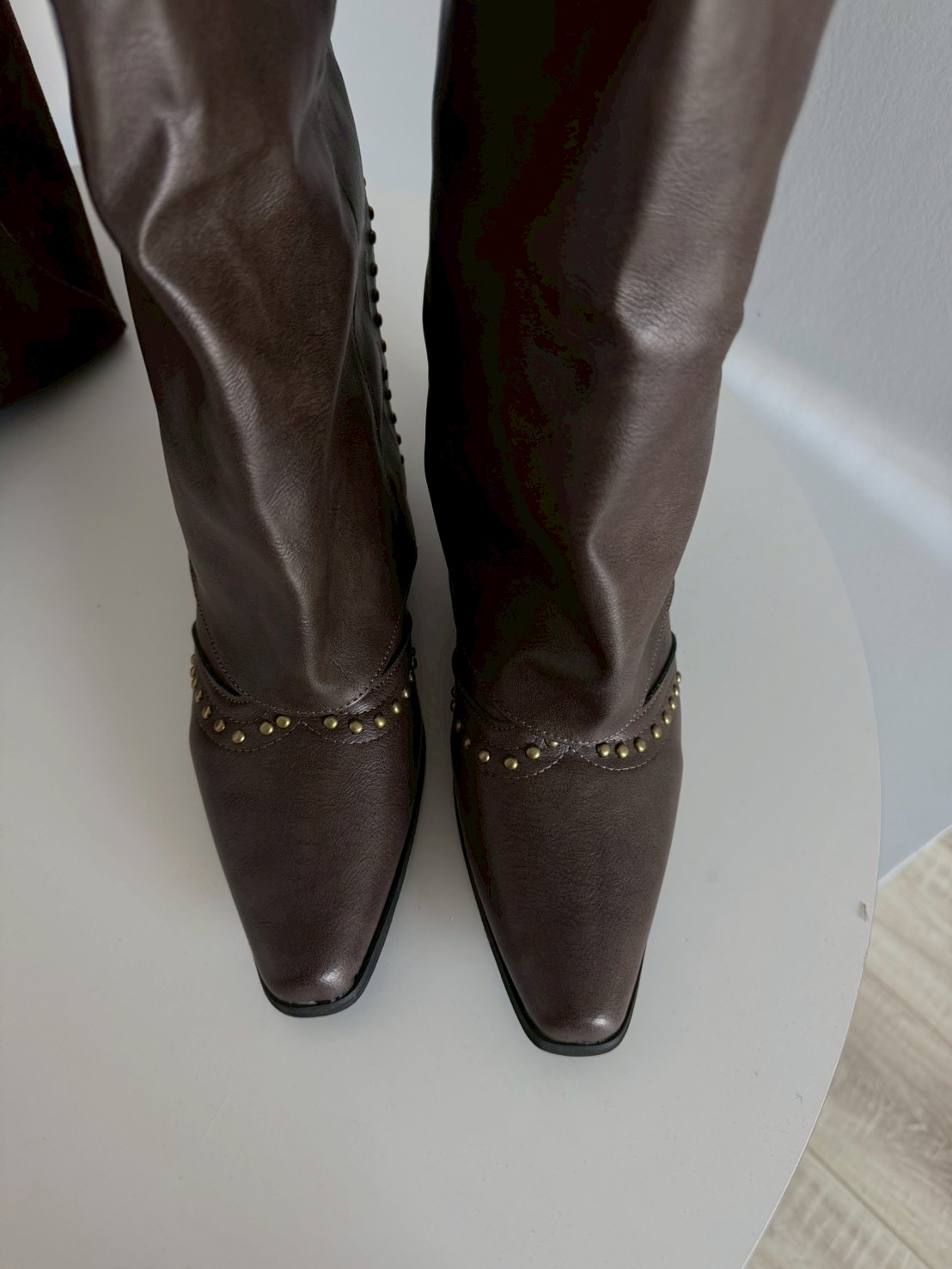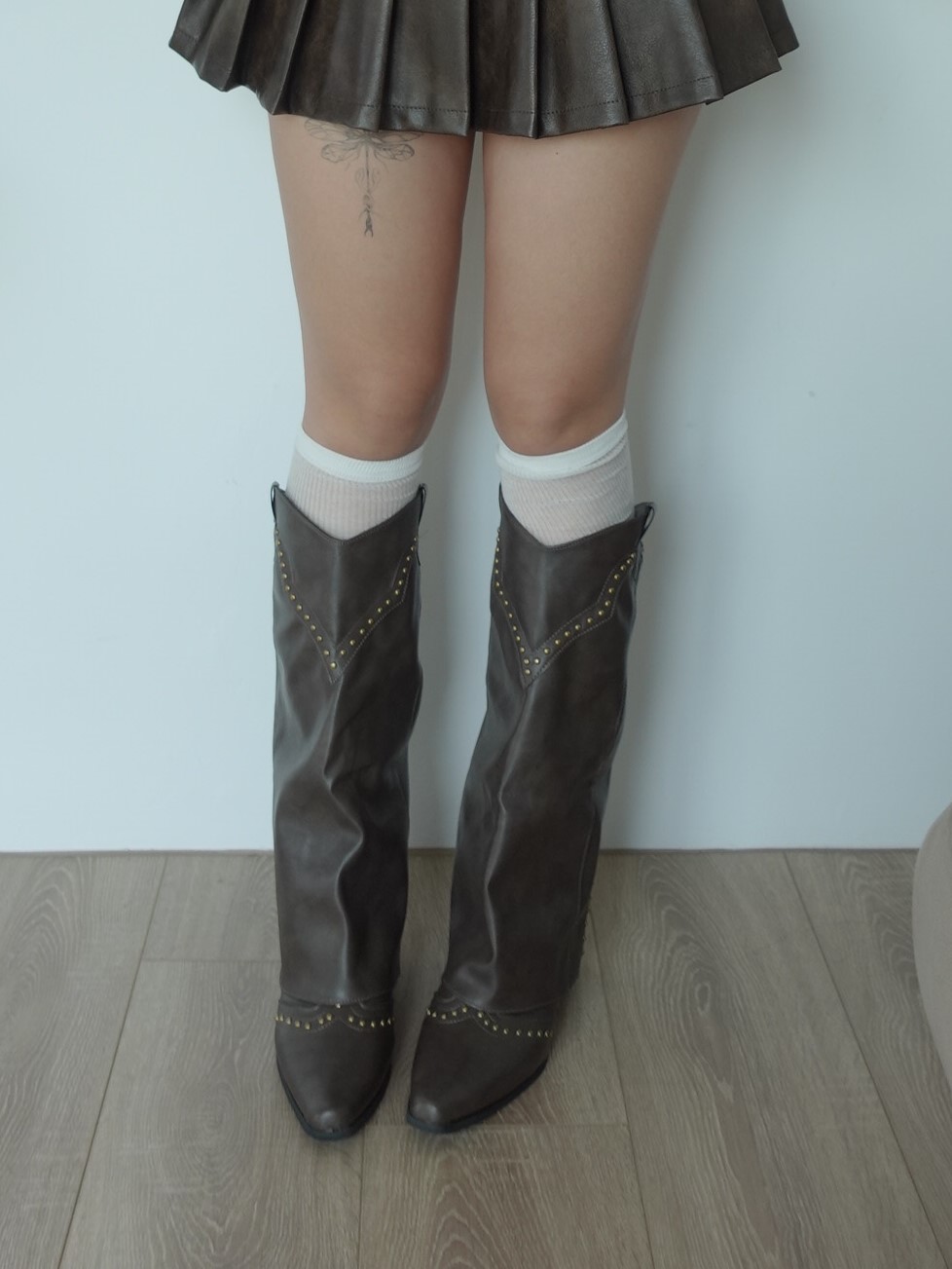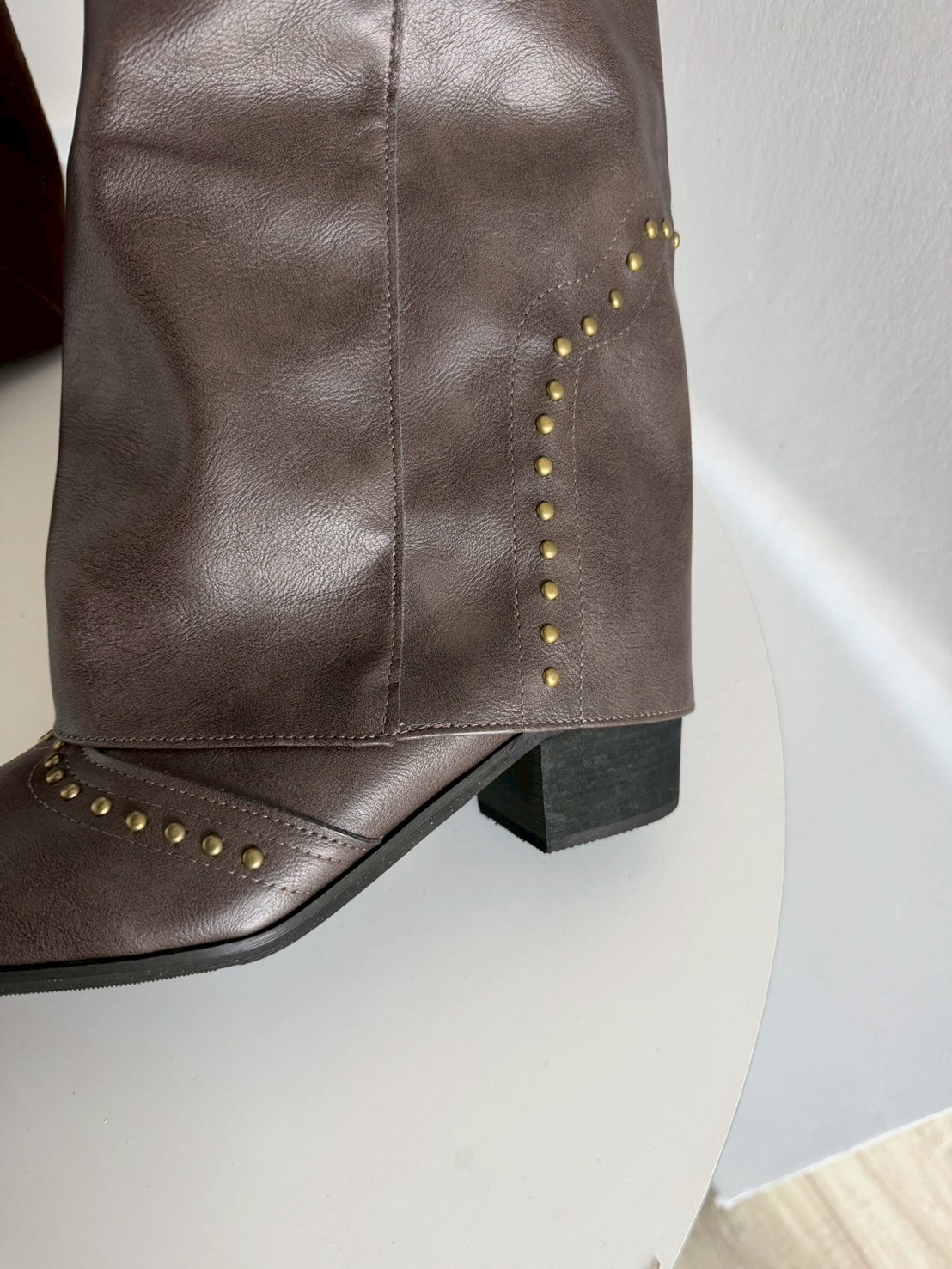 金屬鉚釘細節低調點綴,讓整雙靴子在溫潤輪廓中