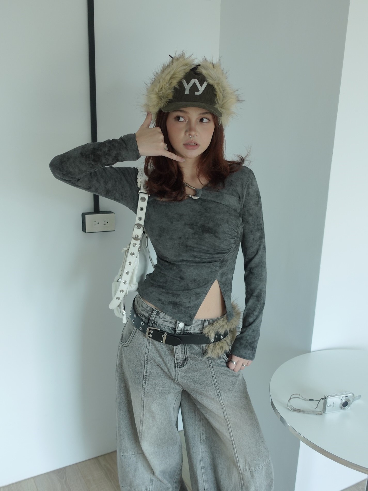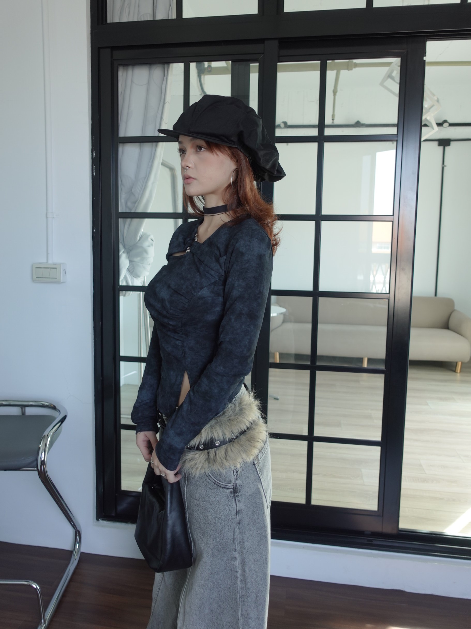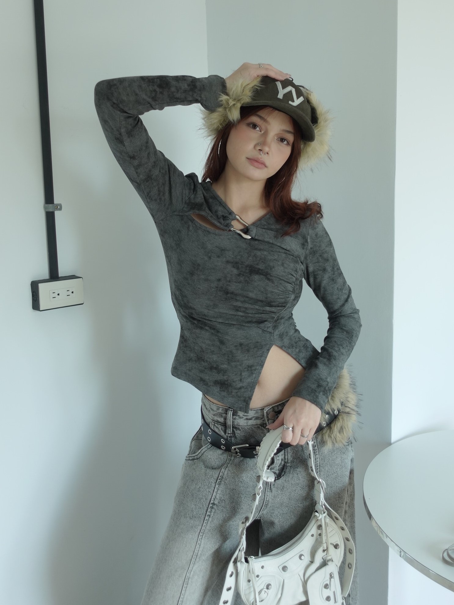暈染灰調布料,層次自然不張揚,不對稱剪裁搭配側邊抓褶,修飾腰線比例!