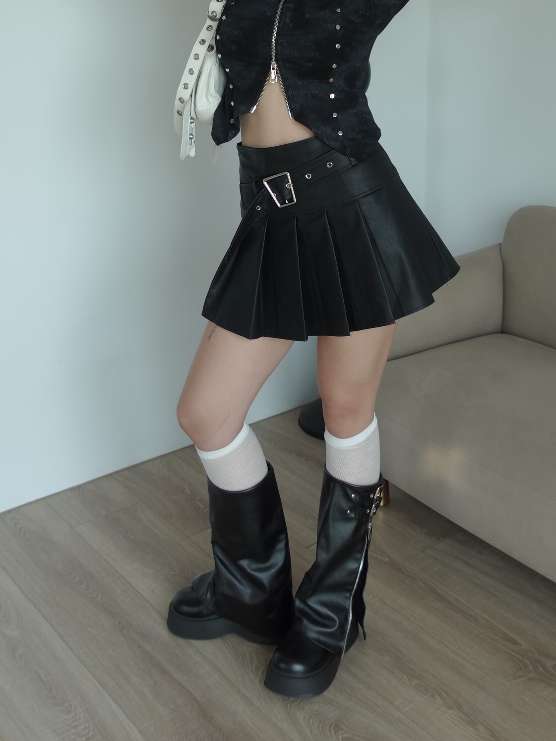 配靴子或厚底鞋都很有穿搭完整度,如果在找一件能撐造型的,下半身選它就對了!寬百褶真的好加分,有附安全褲